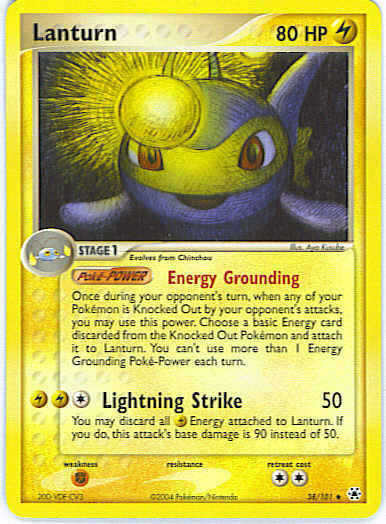 Evne [CLL] Lightning Strike (50) You may discard all L Energy attached to Lanturn. If you do, this attack's base damage is 90 instead of 50.