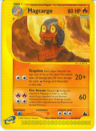 [CCRR] Fire Stream (60) Discard a R Energy card attached to Magcargo in order to use this attack. If your opponent has any Benched Pokemon, this attack does 10 damage to each of them. (Don't apply Weakness or Resistance for Benched Pokemon.)