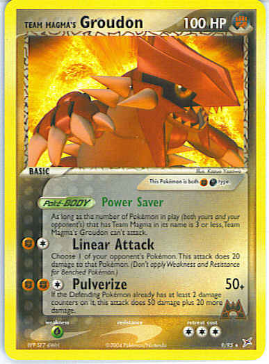 | Type | Darkness Fighting | | Pokemon serie | Team Aqua-Team Magma | | Stadie | Basic | | HP | 100 | | Sjældenhed | Rare | | Tilbagetrækning | 3 | | Svaghed | G | | Kortnummer | 9 | | Evne |