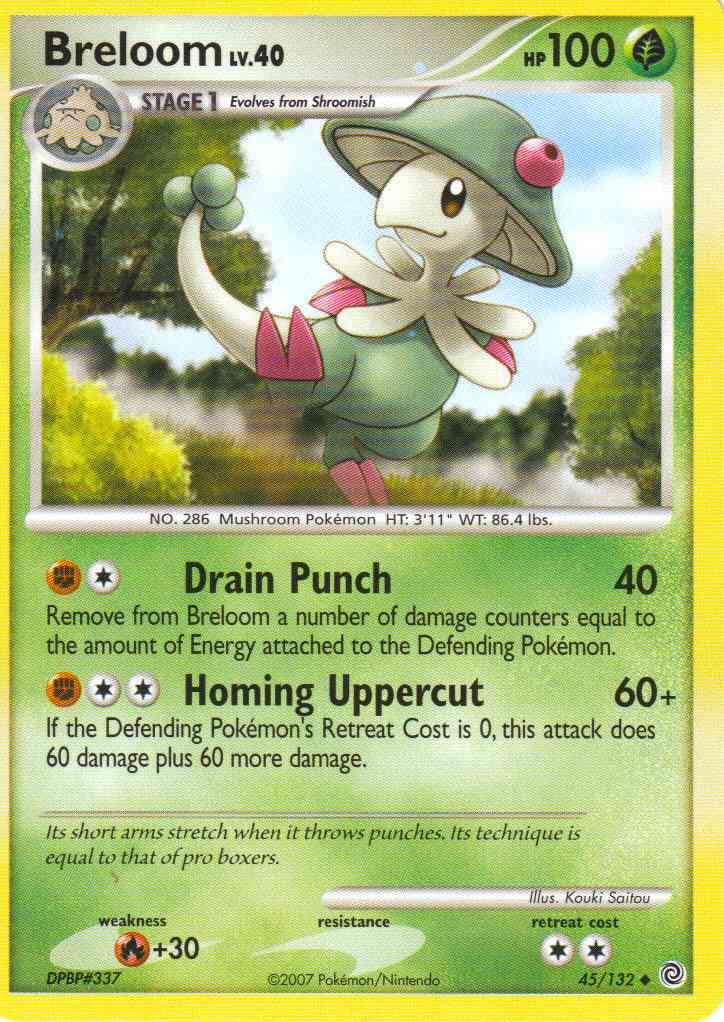 [CF] Drain Punch (40) Remove from Breloom any number of damage counters equal to the amount of Energy attached to the Defending Pokemon.