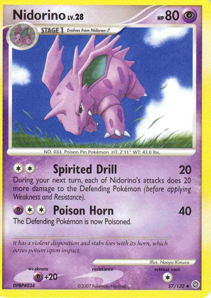 [CC] Spirited Drill (20) During your next turn, each of Nidorino's attacks does 20 more damage to the Defending Pokemon (before applying Weakness and Resistance).