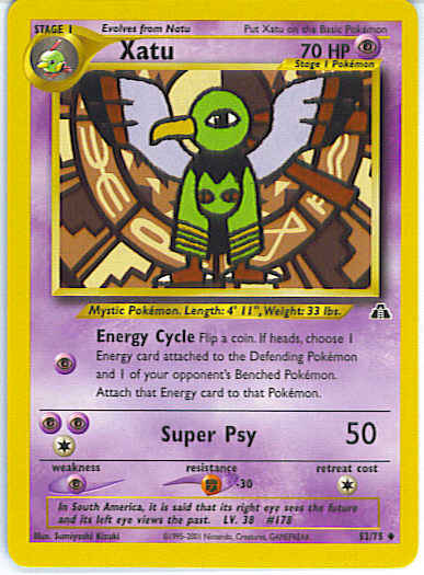 Evne [P] Energy Cycle - Flip a coin. If heads, choose 1 Energy card attached to the Defending Pokemon and 1 of your opponent's Benched Pokemon. Attach that Energy card to that Pokemon.